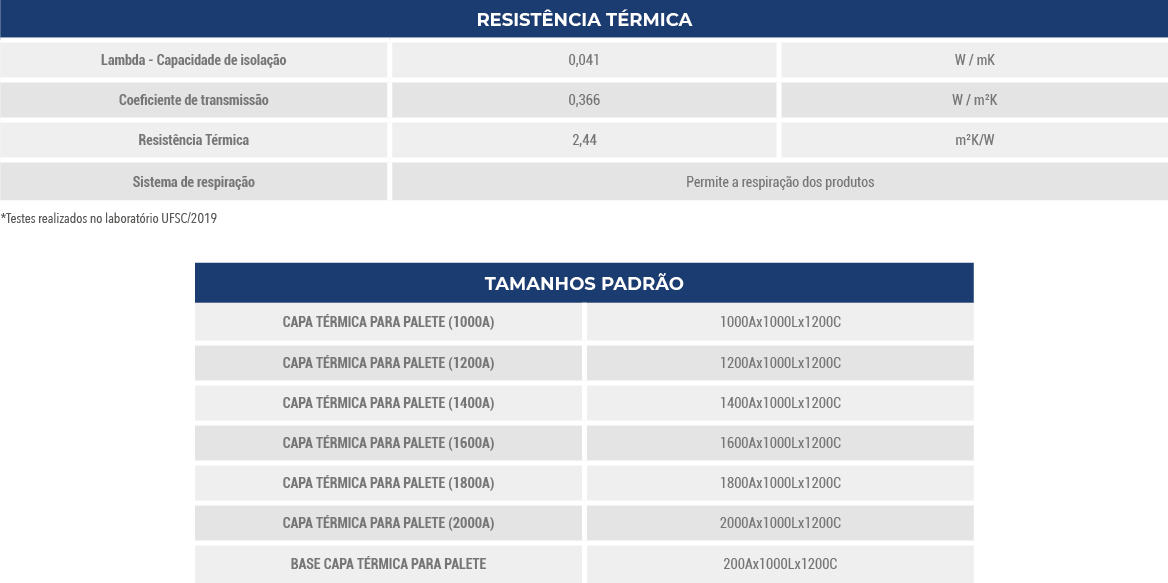 Também conhecida como manta térmica para pallet, foi desenvolvida para proteger mercadorias paletizadas sensíveis à variação de temperatura. São produzidas de acordo com a necessidade do cliente, nas medidas que melhor se adequem à sua operação logística. A capa térmica para palete, ou cobertura térmica para pallet, ou simplesmente manta térmica, é uma solução viável para os transportadores de produtos perecíveis, diminuindo o risco de quebra de temperatura e consequente perda e contaminação de seus produtos.