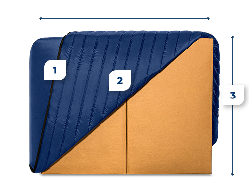Para o revestimento utilizamos o nylon, material de fácil limpeza, impermeável e leve.